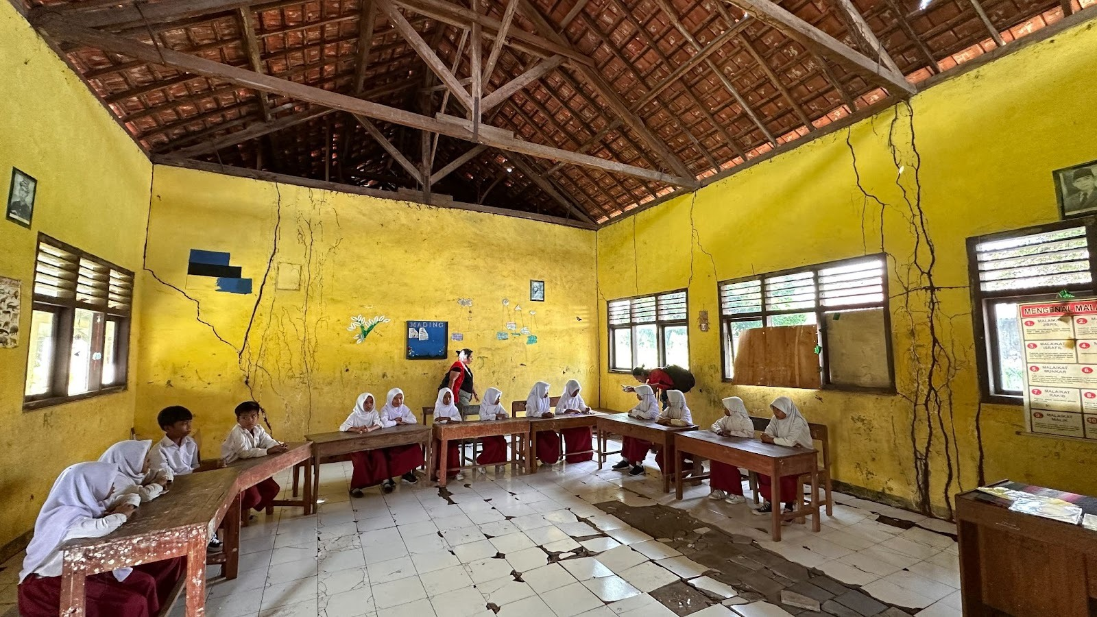 Untuk mewujudkan mimpinya, mereka bersekolah dengan fasilitas seadanya. Di keadaan gedung sekolah yang reot. Lantai keramik yang retak. Genteng kelas yang bolong-bolong. Kalau matahari muncul, kelas akan terasa panas. Jika hujan datang, kelas akan basah. Situasi ini membuat kelas menjadi tidak kondusif.